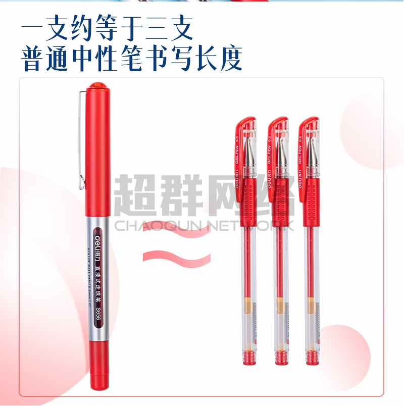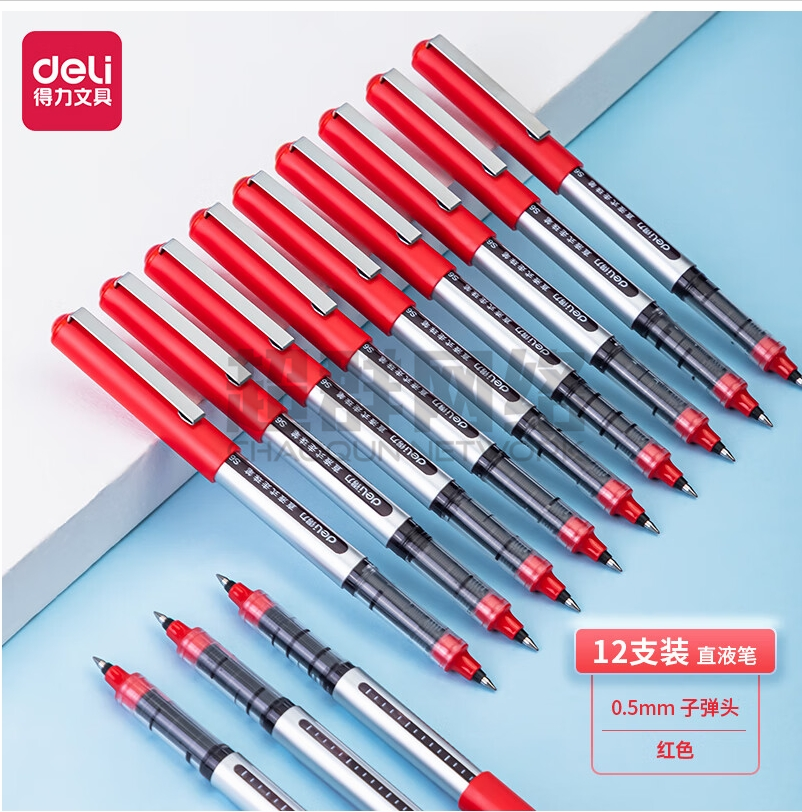 得力(deli) S656 中性笔 0.5mm子弹头直液笔 签字笔 红色 单位:12支/盒